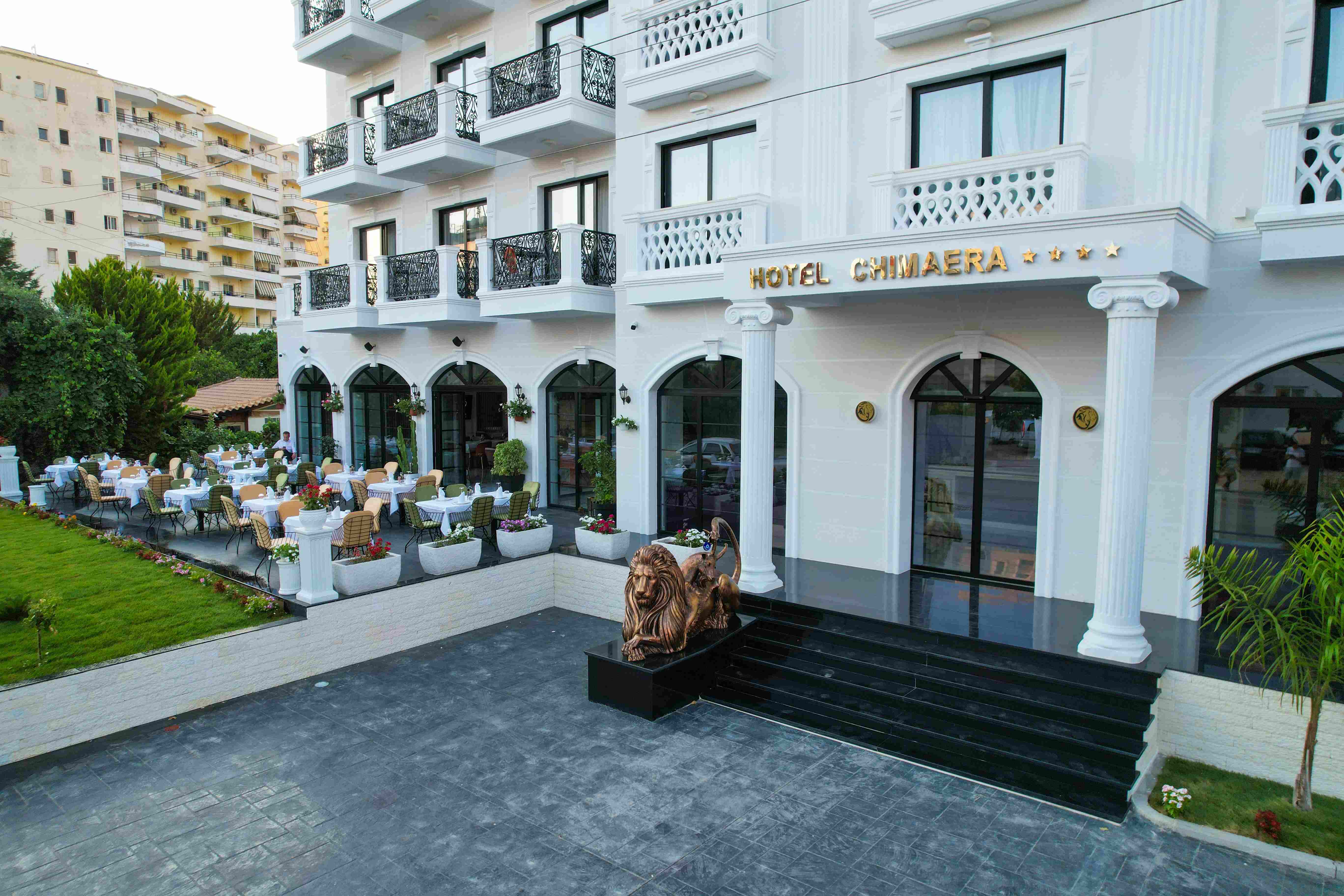 The on-site bar at Chimaera Hotel offers an exclusive space for guests to unwind with handcrafted cocktails, fine wines, and refreshing beverages.